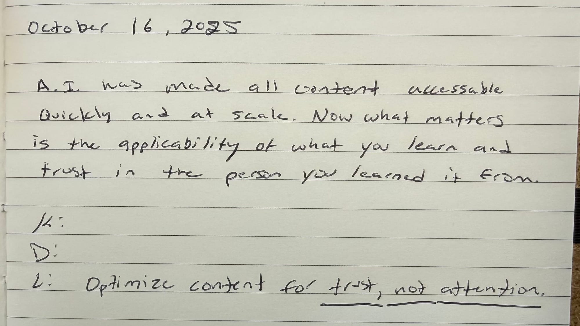 Grab a notebook, keep it short, keep it human. When we gather inside The Vault, you’ll see how other creators use theirs too.